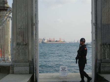 In order to preserve the woodwork and the floors, we had to put on plastic shoe covers and we were also not allowed to take pictures inside the palace. There are a ton of chandeliers and very delicate painting throughout that could be damaged by multiple flashes and other photography. The grounds were very beautiful and the swan fountain and the gates and views of the Bosphorus were amazing.
