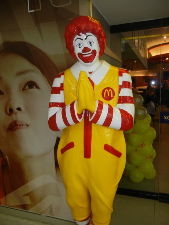 Earl and I also got some of the other things were were looking for and got a snack at “Mr. Bun” which was great, but not filling so I grabbed a cheeseburger and fries from McDonalds. And even Ronald McDonald gets to “Wai”, which is the Thai bowing greeting.