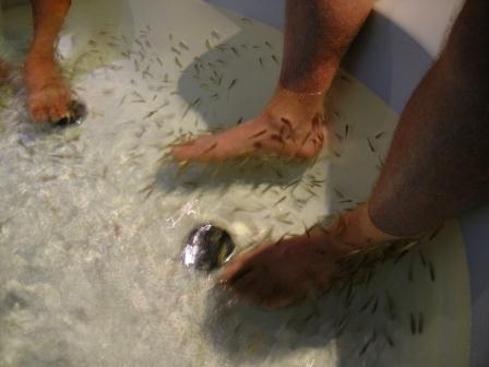 Once we walked underneath the tunnel we saw the “exhibit” Happy Feet, Happy Fish, this was included in our Super package ticket and I laughed when I saw that we wouldn’t have to go outside of the mall at all to go to the fish spa. We decided that Earl’s feet were a special foreign delicacy since there were a huge number that decided to attach themselves to his feet and ankles.